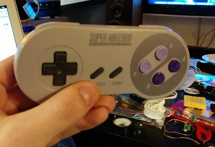 A week ago a bluetooth wireless controller went on sale at GameStop for $8. I bought one and ripped it apart with the intention of stuffing it inside a Super Nintendo controller. Thankfully the whole thing fit perfectly and works great with my Fire TV.